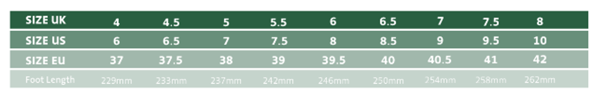 GUIDE DES TAILLES DE CHAUSSURES